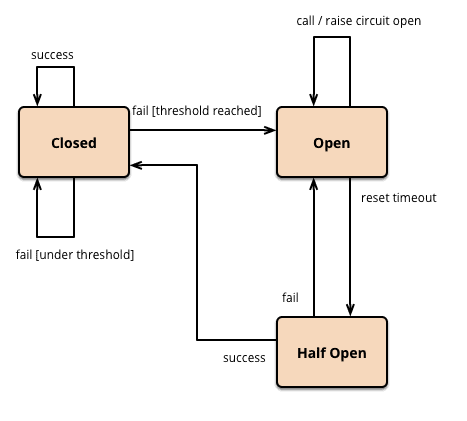 基本的断路器模式下,保证了断路器在open状态下,保护supplier不会被调用,我们可以使用额外的措施使得supplier在恢复服务后,可以重置断路器,定期进行supplier进行探测,此时断路器状态为half-open